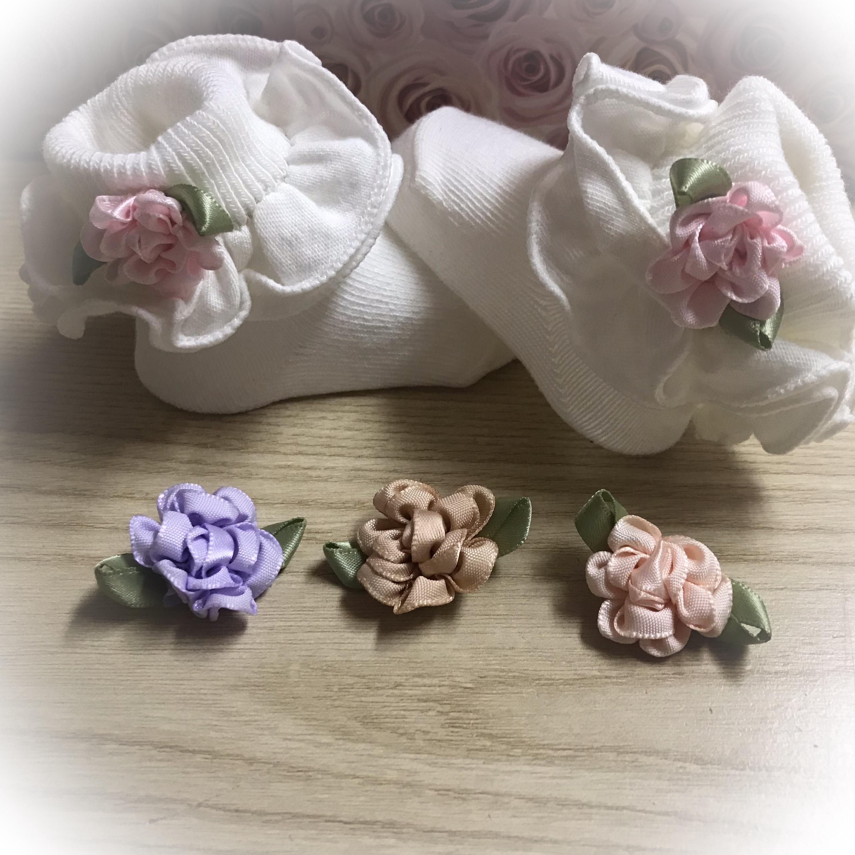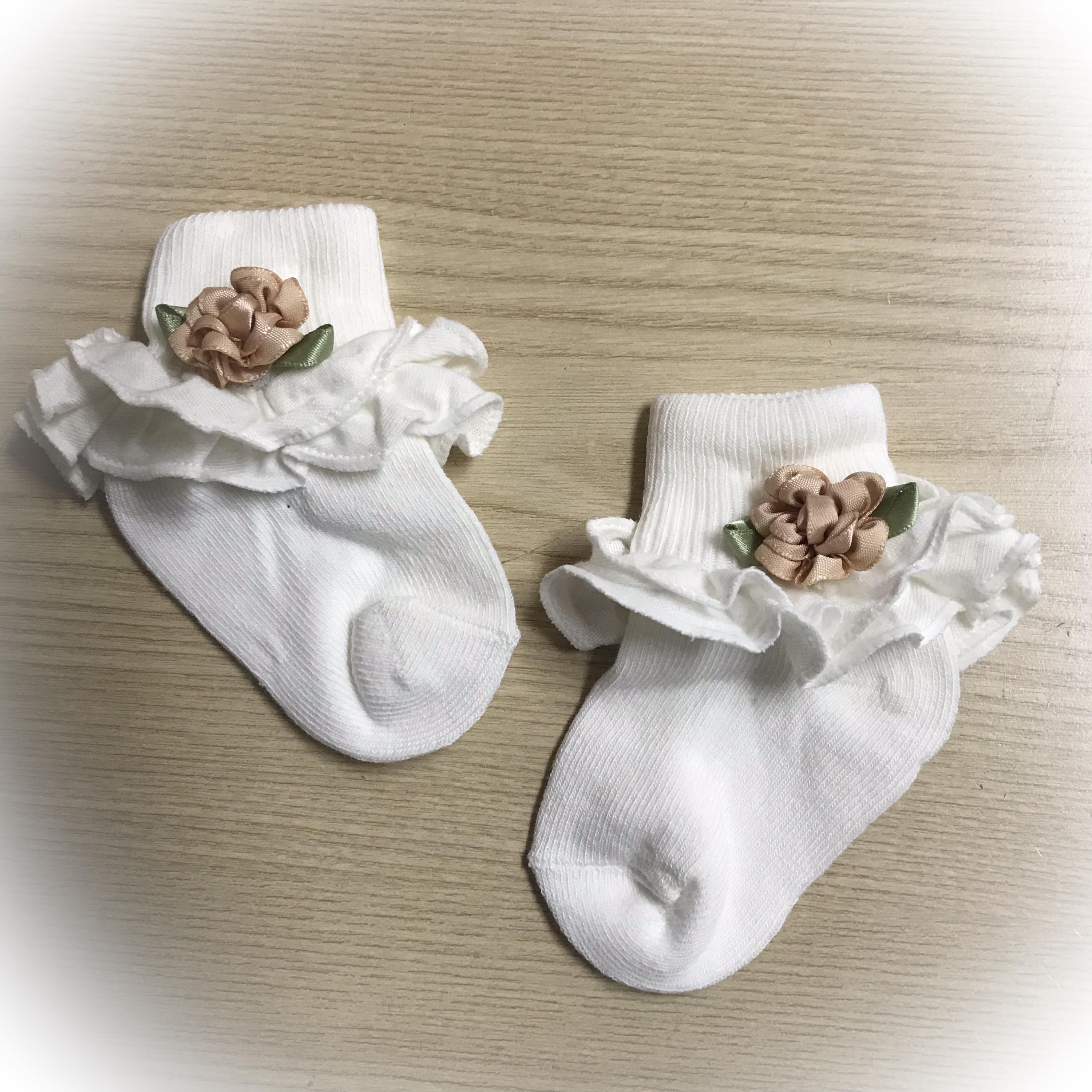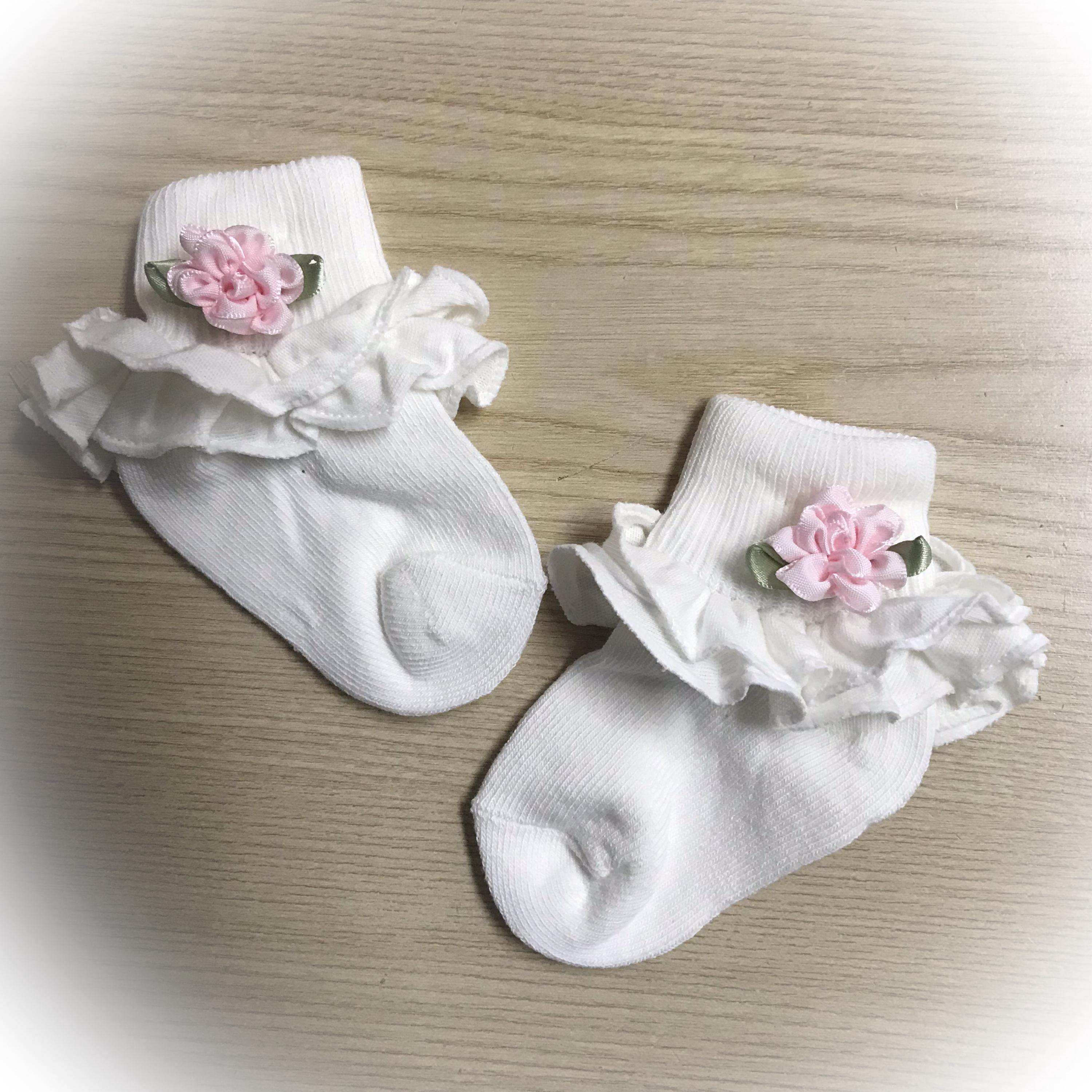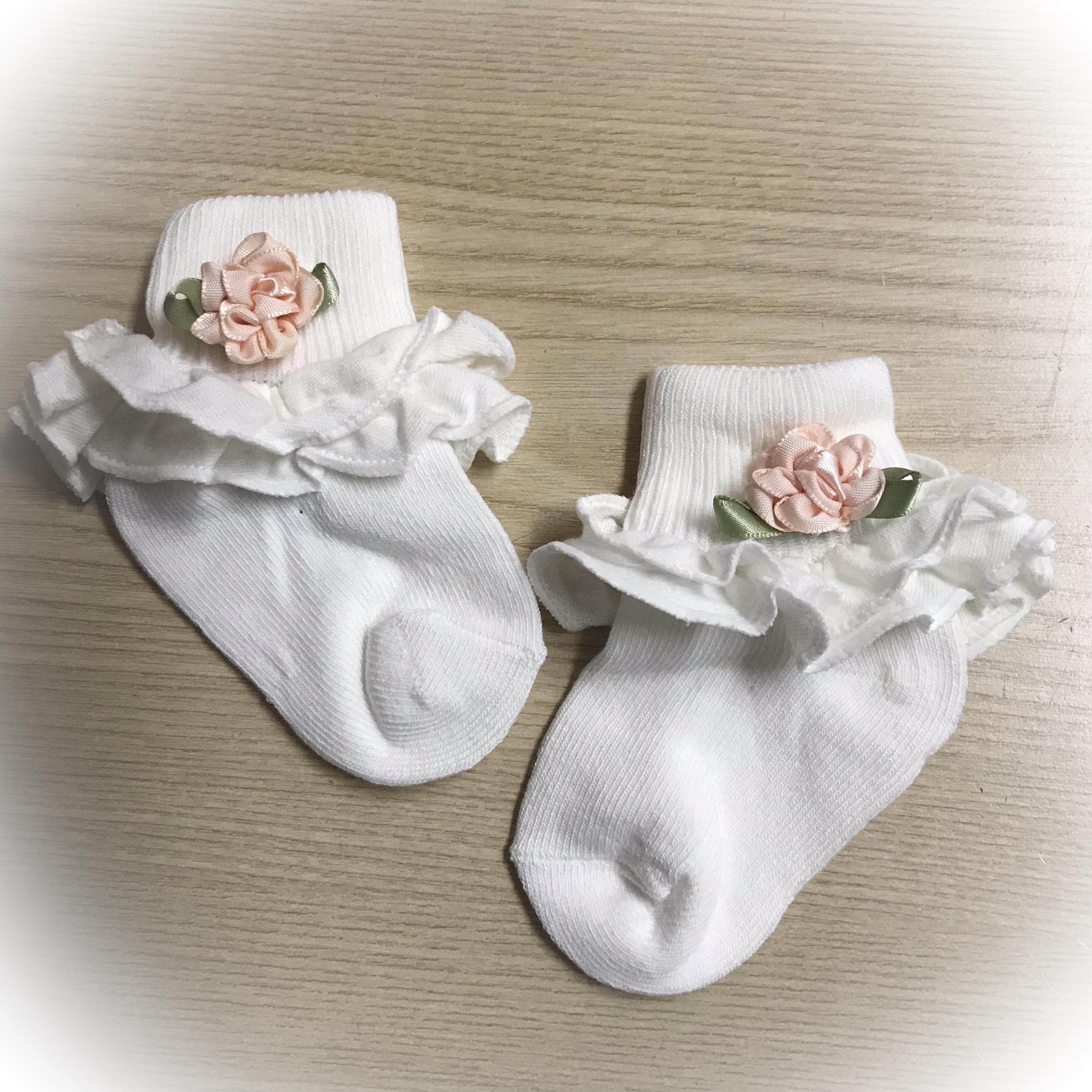 These sweet little baby bootie socks will keep those tootsies warm.