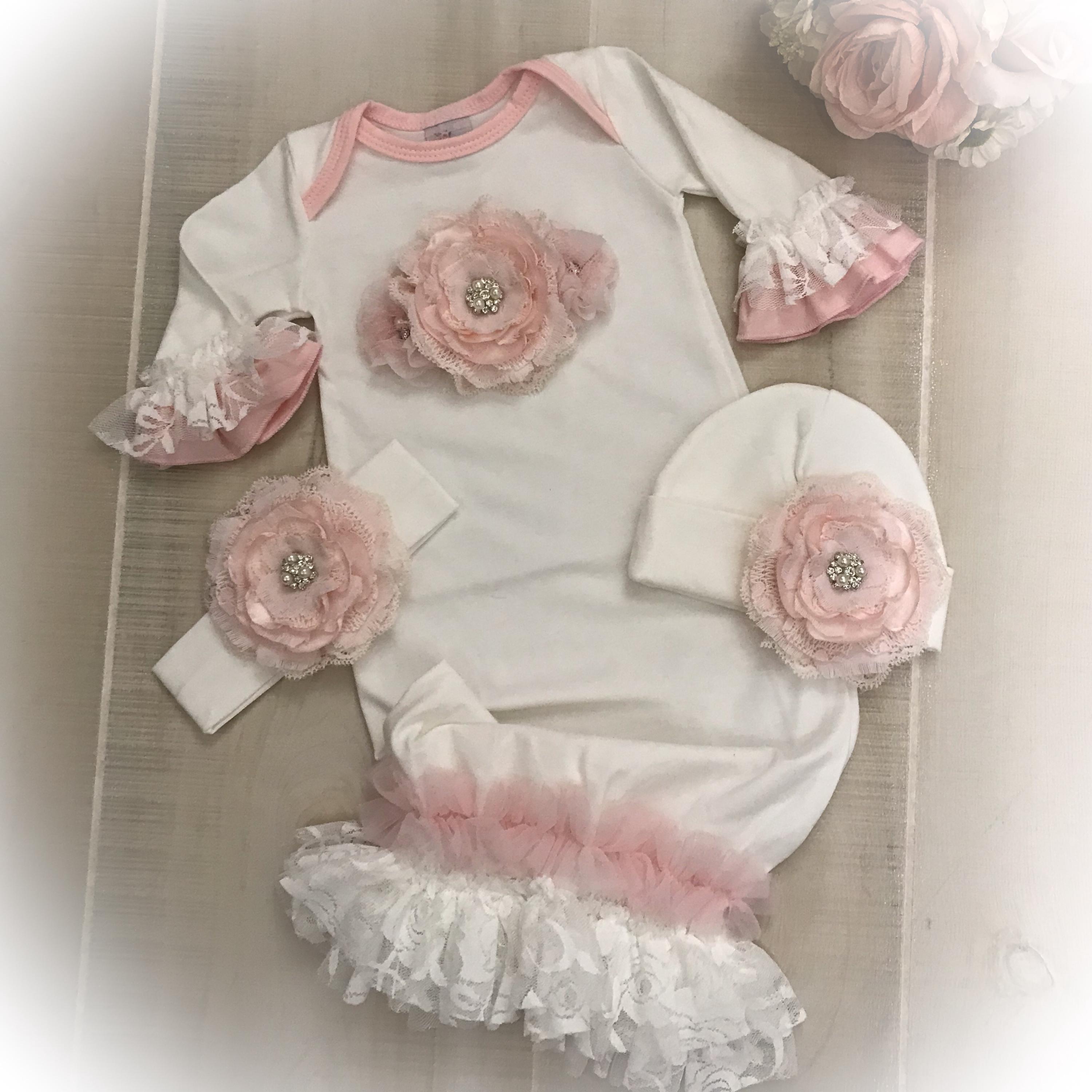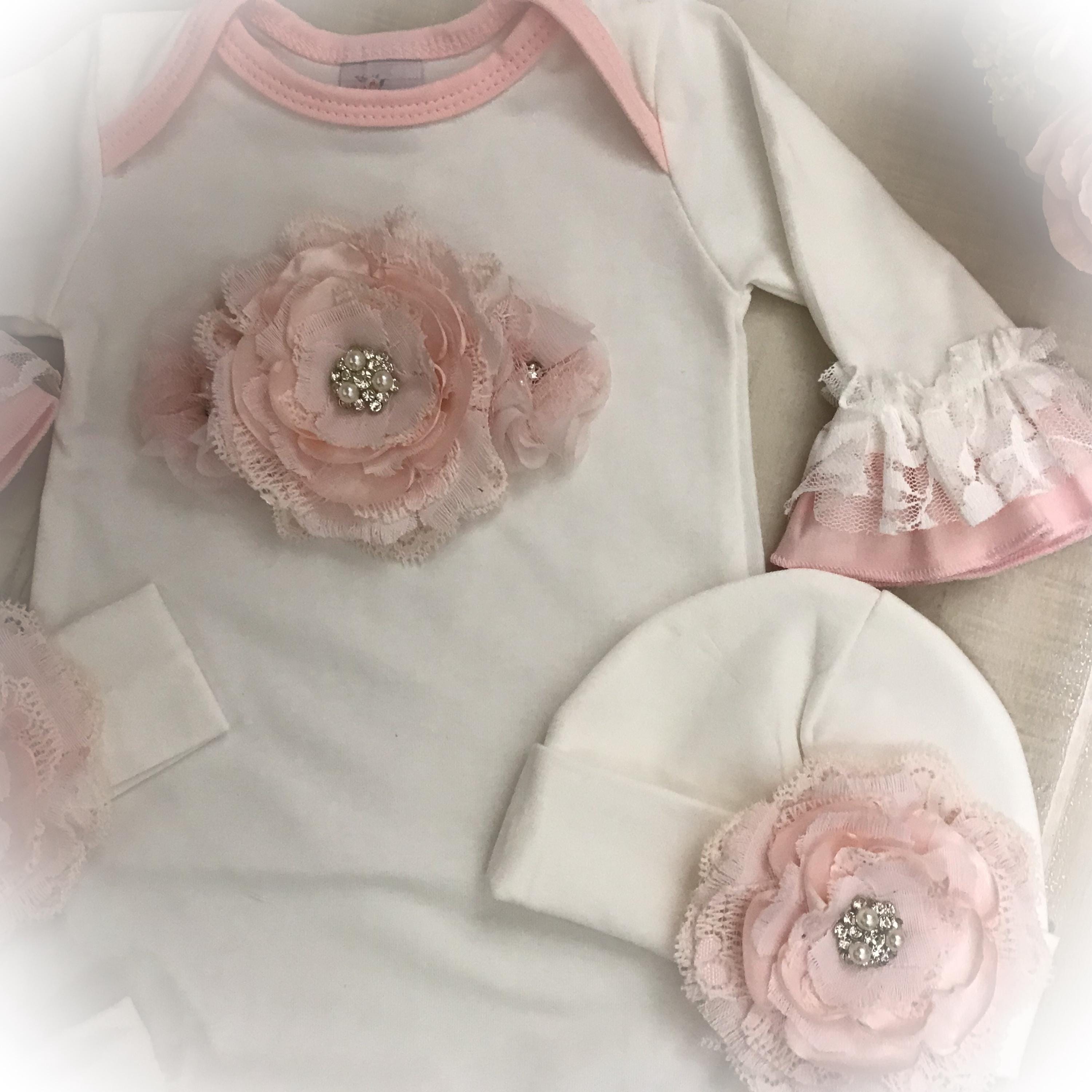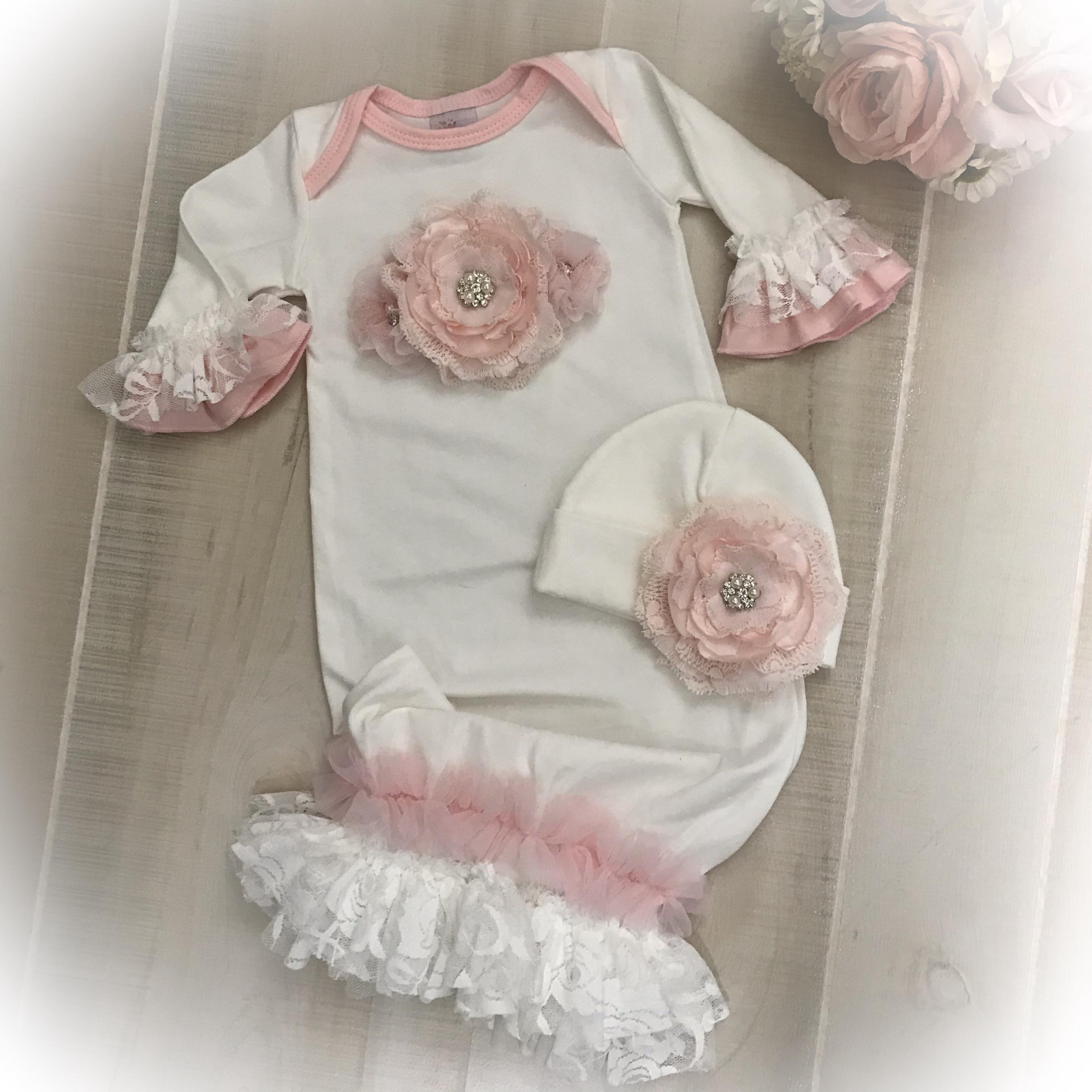 Made from Soft cotton/ spandex the gown and cap are so soft in addition to being beautiful. Perfect for that first picture or christening.